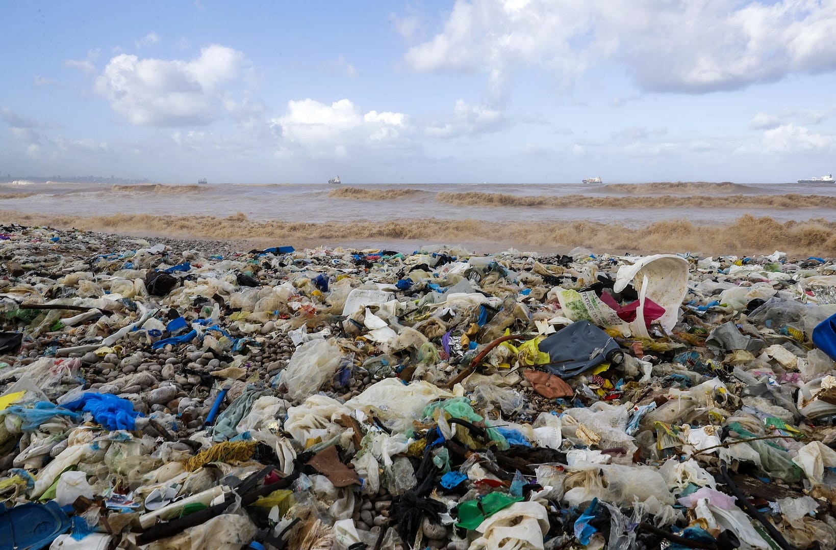 Cleaning up waste on a beach